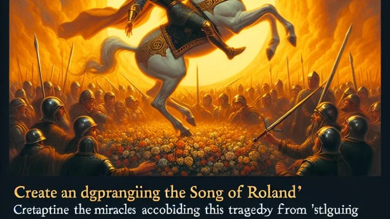 Śmierć Rolanda to dramatyczny moment w "Pieśni o Rolandzie". Cuda towarzyszące tej tragedii symbolizują jego heroizm, siłę i transcendencję. Przedstawienie tych wydarzeń podkreśla nadrzędną rolę Boga i głębokie wartości duchowe. To poruszający moment o odwadze i wierzeniach bohaterów. ✅