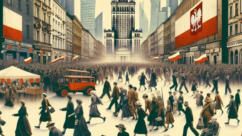 Praca opisuje życie w Polskiej Rzeczpospolitej Ludowej, zwracając uwagę na sprzeczności i zmiany społeczno-polityczne.✅ Opisuje też wpływ tego okresu na dalsze losy Polski.