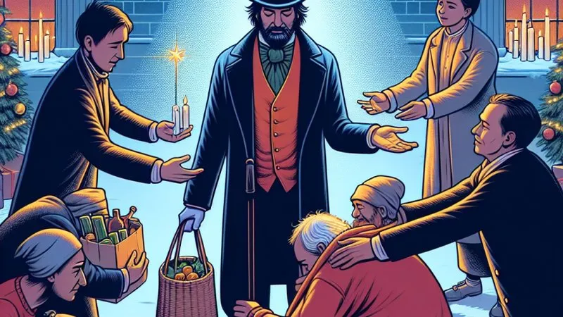 W kontekście działania na rzecz potrzebujących, „Opowieść wigilijna” przypomina nam, że możliwość pomagania innym jest często tuż obok nas, a nasza postawa ma ogromny wpływ na życie innych ludzi – zarówno tych, którym pomagamy, jak i nasze własne. Pomoc może przyjąć wiele form, nie musi się ograniczać tylko do wsparcia finansowego. Jest to równie dobrze wsparcie emocjonalne, spędzenie czasu z osobą samotną czy wykonanie pracy na rzecz społeczności.