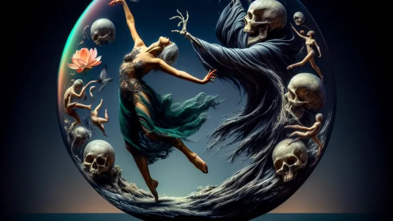 Motyw tańca śmierci jako forma spektaklu, w którym każdy z nas jest uczestnikiem, odnosi się do równości i nieuchronności śmierci, która dotyka wszystkich bez względu na status społeczny czy bogactwo. Ta symboliczna wizja tańca wprowadza nas w atmosferę refleksji i zaprasza do zastanowienia nad przemijalnością ludzkiego losu.