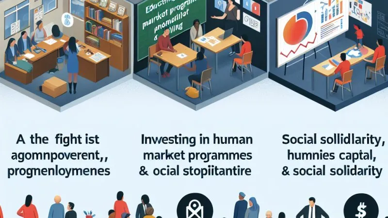 Najważniejszym aspektem w walce z biedą jest zapewnienie dostępu do edukacji i podnoszenie kompetencji zawodowych. Historia dowodzi, że dobrze wykształcone społeczeństwo ma szersze możliwości ekonomiczne. Przykładem może być "Analfabeta, który potrafił liczyć" Jonas Jonasson, pokazujący jak wiedza matematyczna głównej bohaterki otwiera przed nią drzwi do lepszego życia. Edukacja to także promowanie innowacyjności oraz kreatywnego myślenia, które prowadzi do tworzenia nowych przedsięwzięć gospodarczych i miejsc pracy. Bogata literatura przedmiotu, tak jak "Kapitał ludzki i społeczny a rozwój regionalny" pod redakcją Jerzego Hausnera, podkreśla znaczenie inwestycji w kapitał ludzki.