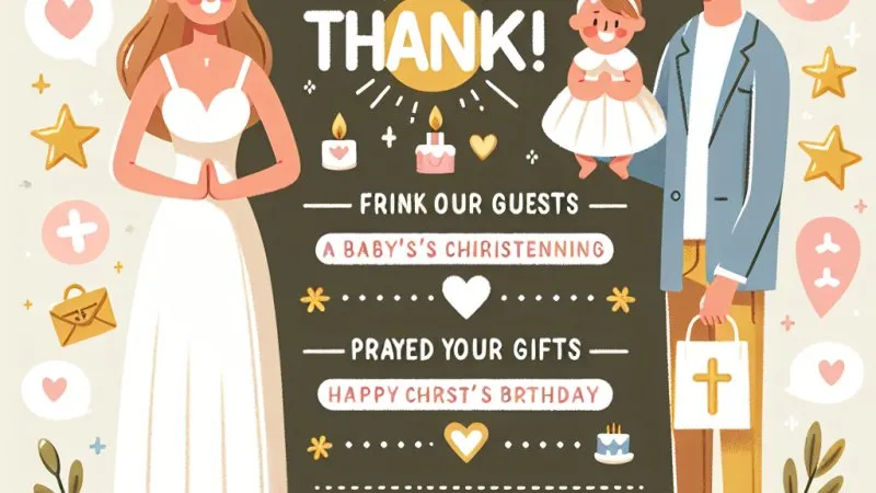 Podziękowanie dla gości za udział w uroczystości chrztu świętego i uroczystości urodzinowej niemowlaka.